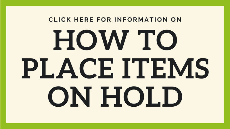 - You may place items on hold via the library’s website or Librista app OR by calling at least 24 hours ahead of time. (See link below for assistance on placing holds)